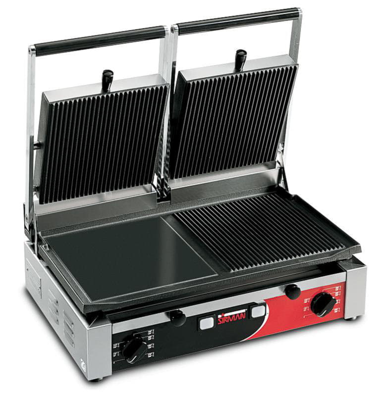 Электрический контактный гриль PD LR-RR от итальянской фабрики SIRMAN предназначен для приготовления мяса, рыбы, стейков и гамбургеров.