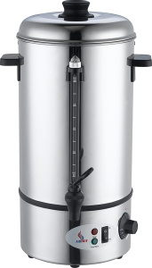 Изготовленный из нержавеющей стали, кипятильник оснащен аварийным термостатом и индикаторами, показывающими режимы «Нагрев» и «Поддержание температуры». Механический регулятор температуры позволяет устанавливать диапазон от +30 до +100ºС с шагом в 5ºС.