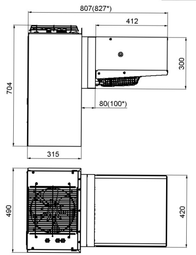 Моноблок может быть установлен как врезным, так и настенным способом. В конструкции используются трубчатые медно-алюминиевые теплообменники, которые уже заправлены хладагентом. В комплект поставки входят все необходимые элементы для установки, включая 3-метровый кабель для подключения к автоматическому выключателю, 5-метровый кабель для подключения освещения и выключателя в камере, а также светильник и монтажный комплект креплений.