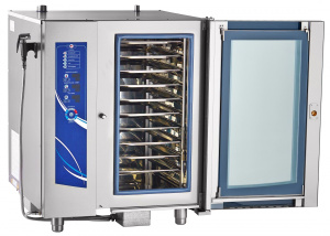 Пароконвектомат оснащен инжекционным механизмом для образования пара, что позволяет эффективно увлажнять продукты во время приготовления. Это обеспечивает сохранение их аромата и витаминов. Удобная панель управления и автоматизация позволяют быстро настраивать устройство на рабочий режим.