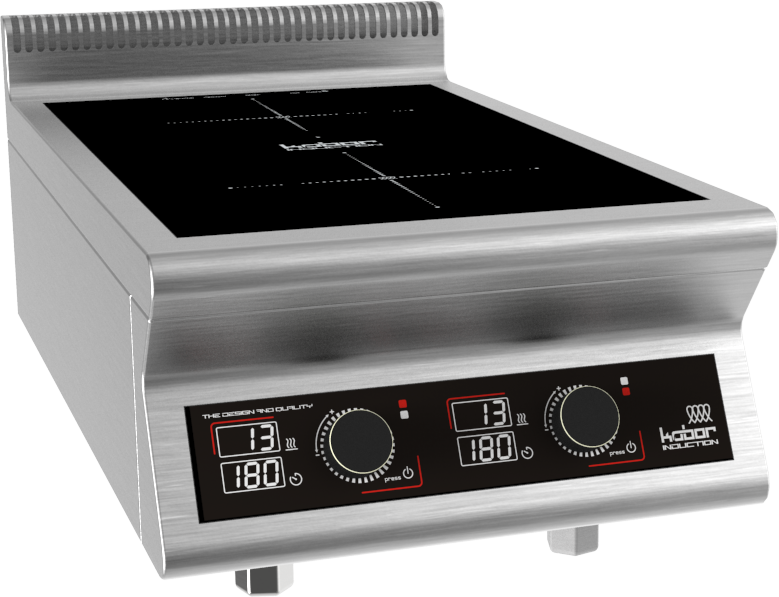 Плита индукционная настольная, 2 конфорки мощностью 2х3,5кВт, электронная панель управления с цифровой индикацией, 13 уровней нагрева, таймер до 180мин., съемный жировой фильтр, корпус из н.с. AISI 304, регулируемые по высоте ножки, рабочая поверхность - стеклокерамика 6мм, 7 кВт, 220В, вес 21 кг. С возможностью установки на подставку.