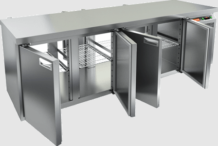 Панель управления электронная, что обеспечивает точный контроль за температурными режимами. В комплект входят четыре полки размером 530х325 мм (стандарт GN 1/1), а толщина столешницы составляет 50 мм. Регулируемые по высоте ножки и автоматические доводчики дверей с фиксатором открытого положения добавляют удобства в использовании. Легкозаменяемые магнитные уплотнители обеспечивают надежную герметичность.