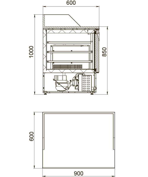 - Габариты: ширина 900 мм, глубина 600 мм, высота 1000 мм, что делает его компактным и удобным для размещения в любом помещении.