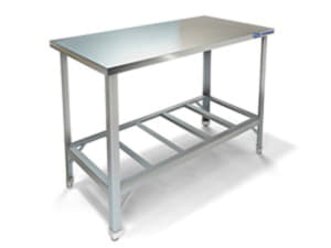 Столы производственные имеют широкую область применения: в пищеблоках, продовольственных магазинах, в цехах, связанных с переработкой пищевого сырья и т.д. Стол производственный имеет разборную конструкцию. Он состоит из столешницы, изготовленной из пищевой нержавеющей стали и каркаса, изготовленного из оцинкованного уголка толщиной 1.5 мм. Столы без борта устанавливаются в центре кухонного помещения и предназначены для четырёхстороннего доступа к рабочей поверхности.