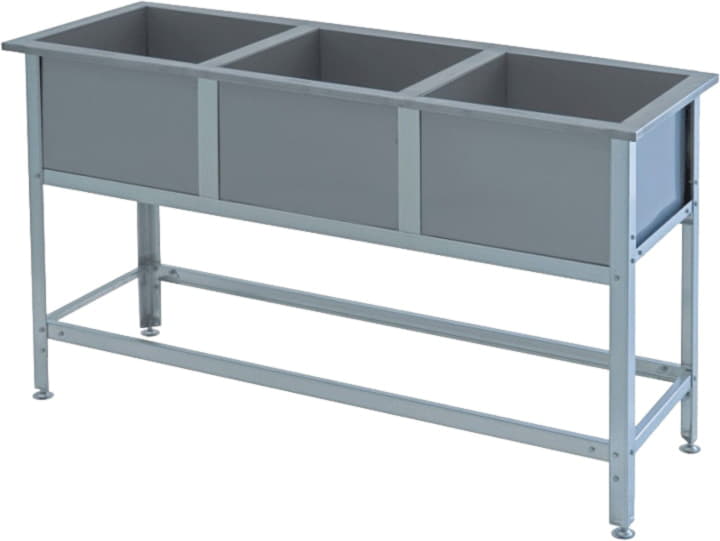 Моечная ванна VIATTO ВСМ-3/430-ЮТ предназначена для ручного мытья посуды, кухонного инвентаря и различных продуктов питания. Мойки изготовлены из нержавеющей стали толщиной 0.8 мм, каркас - из оцинкованной стали толщиной 1.5 мм. Ножки регулируются по высоте.